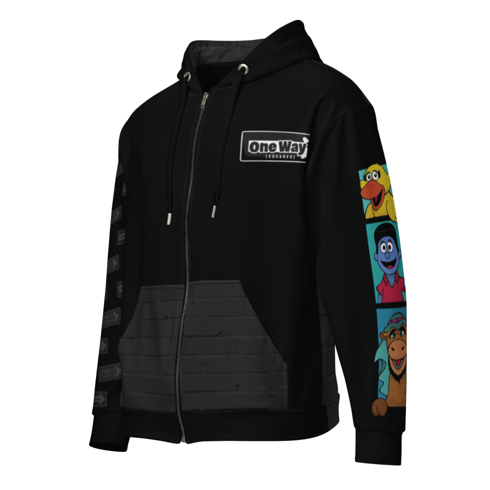 Enjoy the soft, cotton-like fabric while getting high durability and print quality. The snug brushed fleece lining adds an extra layer of comfort. The hoodie’s unisex style features drop shoulders, making it relaxed and chic. Double-lined hood with One Way Squared™ designs on both sides!